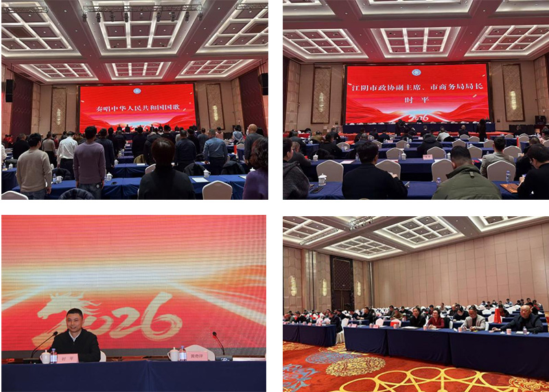 2026年1月8日,江阴市福建商会第六届第二次会员大会在庄严的国歌声中隆重开幕。本次大会以"潮涌扬子江 爱拼赢未来"为主题,全面总结了2025年度工作成果,审议并通过了多项重要制度与发展规划,选举增补了理事、常务理事,为商会未来发展注入新活力。大会结束后,与会会员与嘉宾欢聚温德姆酒店,共同迎接丙午马年的到来。