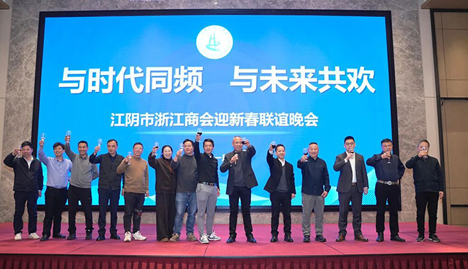 1月20日,党支部书记、副会长林丽云,秘书长凌卫华参加江阴市浙江商会迎新春联谊晚会。