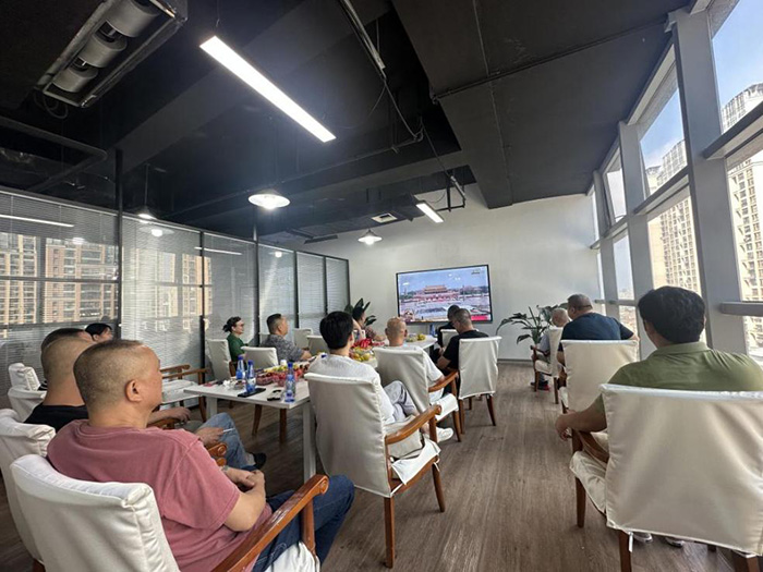 在会长单位大经集团的活动室内,公司会员和员工集中观看纪念活动,并在活动会后开展了热烈讨论。